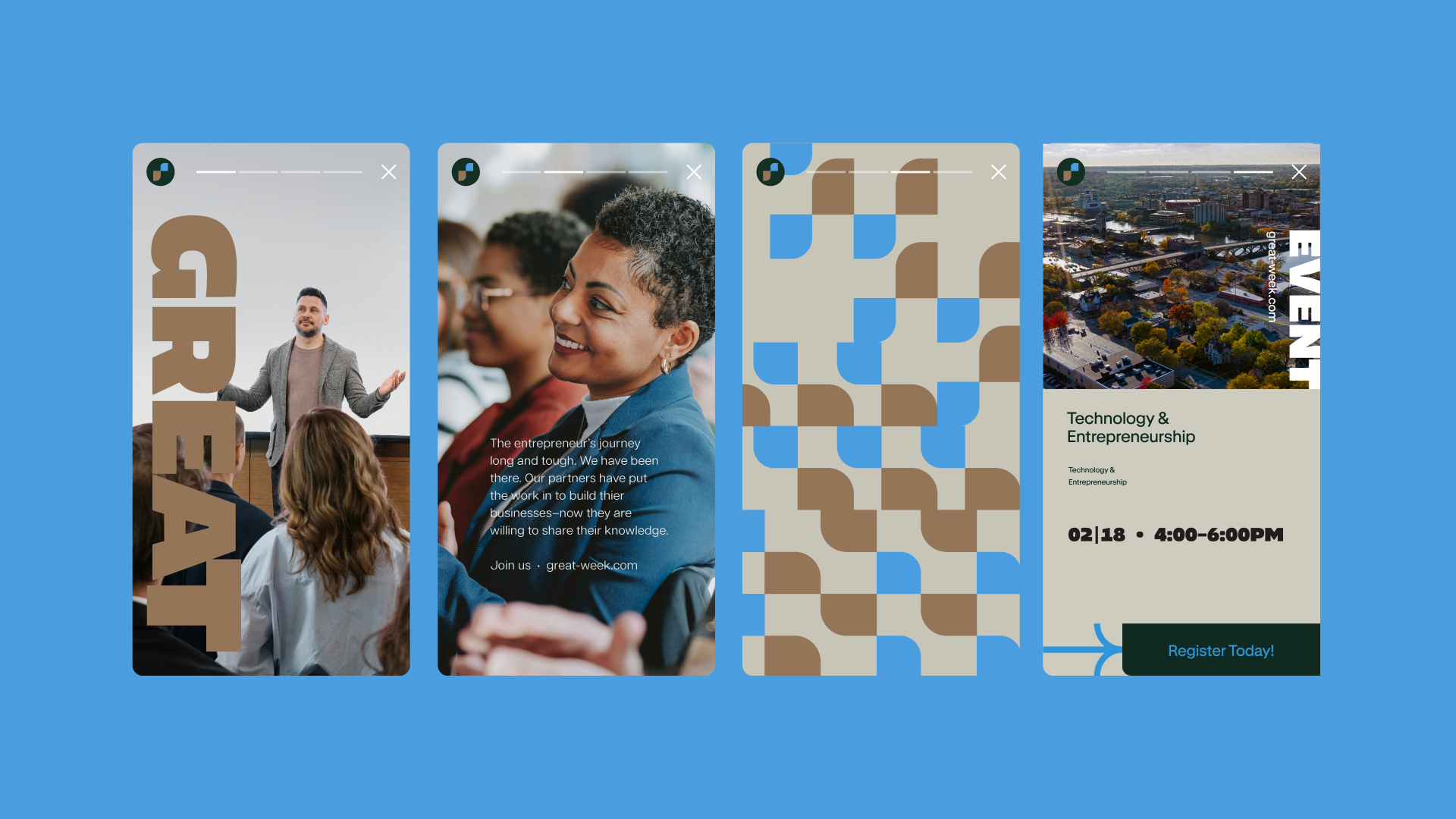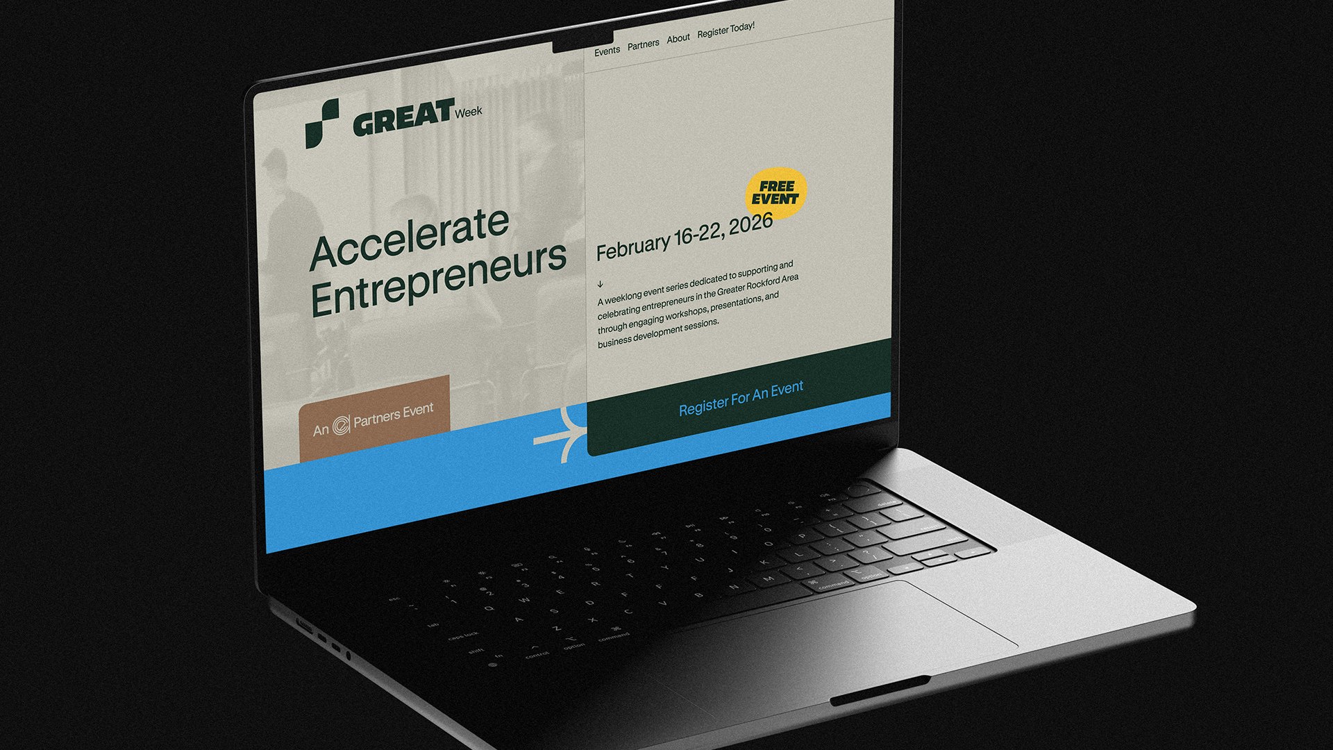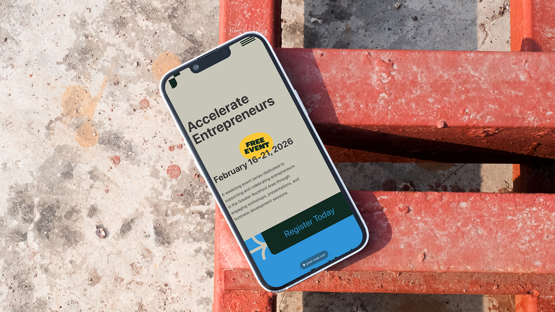 Rockford is the city of ambition and community. We partnered with ACE Partners to develop the identity, website, and marketing for their cornerstone event–GREAT Week. We looked at the landscape of events in the area and designed an identity that met the hardworking entrepreneurs where they are–in the thick of building their companies. Additionally, this identity was built to grow and expand year after year.